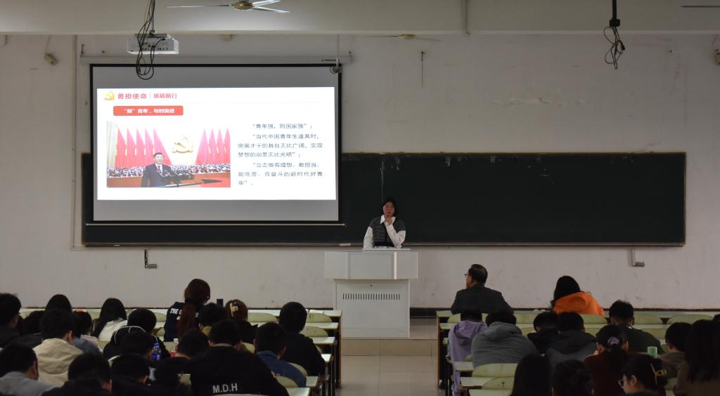 开展党的二十大精神专题学习交流会议,会议由学院党委副书记、副院长谢文平主持,学院团委书记钱春梅主讲,学院辅导员和近300名学生参加学习交流。