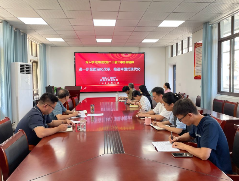 在能源楼325会议室召开党的二十届三中全会精神宣讲会。宣讲会由学院党委书记谢文平主讲,学院各支部书记参加了宣讲会。