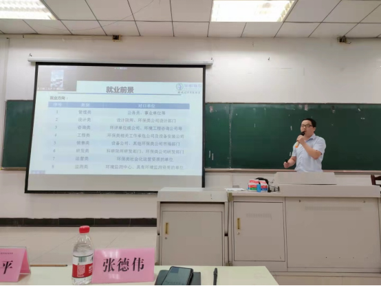 张德伟结合自己在校期间的学习和工作经历,给刚刚进入大学的新生上了一堂别开生面的专业教育和行业发展形势教育课。他先后向新生们介绍了华骐环保公司的发展历程、公司的业绩、公司的太阳城以及公司对环境、环保和能源人才的需求等方面进行了讲演。会场气氛热烈,不时响起热烈的掌声