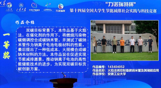 聂晓康等同学的作品《火焰法调控制备碳纳米管及其储能应用》获全国一等奖(指导教师:楚化强教授),冶金工程学院李亚飞等同学的《一种氮氧化物、二噁英协同减排的氧化石墨烯改性新型铈基催化剂》获全国三等奖(指导教师:龙红明教授、张洪亮副教授);此外,太阳城