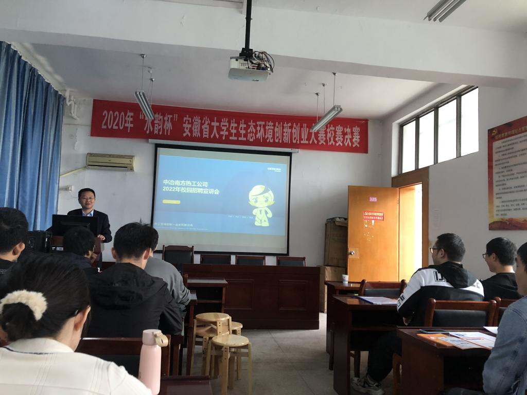 10月15日,中冶南方热工公司人力资源部一行3人到学院开展专场招聘,学院毕业班本科生和研究生到现场咨询并参加了宣讲会。