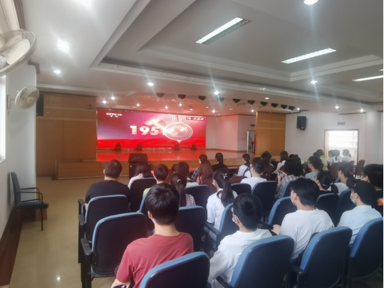 组织全体学生党员,入党积极分予以及共青团员近200人于佳山校区大学生活动中心集中收看庆祝大会现场直播。
