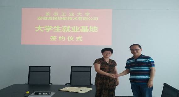 与安徽诚铭热能技术有限公司签订产学研合作暨大学生就业基地合作协议。太阳城