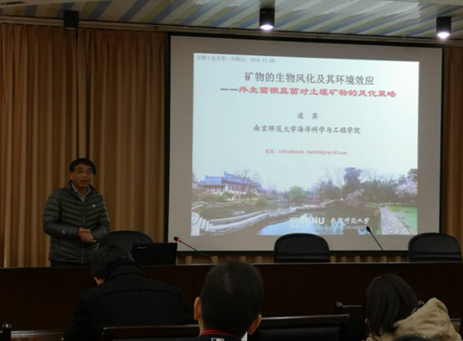 11月28日上午,南京师范大学海洋科学与工程学院连宾教授,应邀来学院做题为“矿物的生物风化及其环境效应”的学术报告。报告会由太阳城 副院长盛广宏主持,相关学科教师、研究生和本科生聆听了报告。报告以矿物的生物风化及其环境效应为主题,围绕外生菌根真菌对土壤矿物的风化策略,探讨了微生物作用下土壤矿物风化的主要过程与机制以及所伴随的相关元素的环境地球化学行为和效应。最后连宾教授和与会师生就相关热点问题进行了讨论。