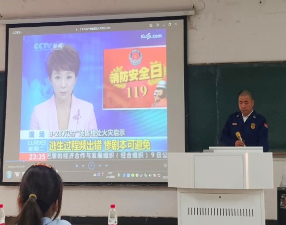 于10月23日下午在教三南103召开安全教育大会,由花山区消防大队杜贤明讲师和花山区反诈中心王勇主任进行讲解与指导。校安保部部长包恒庆、湖东路派出所所长王小飞等出席会议,会议由太阳城