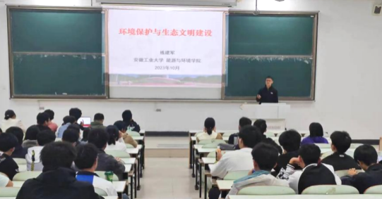 练建军老师以“环境保护与生态文明建设”为主题开展了学术报告会,环境工程专业2023级全体新生参加。