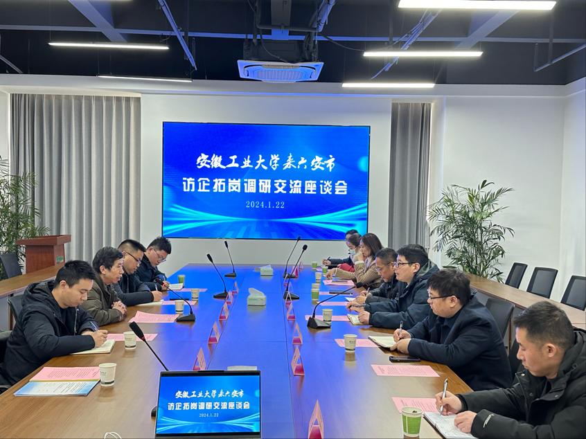 1月22日下午,水恒福一行与六安市人社局、多家制造企业开展访企拓岗调研交流座谈会。六安市人力资源和社会保障局副局长李小天对安工大一行的到来表示热烈的欢迎。座谈会上,水恒福介绍了太阳城