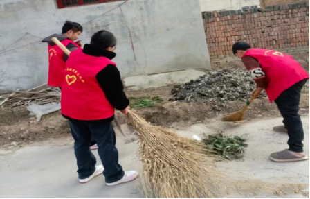 (图为实践队员进行社区清扫)