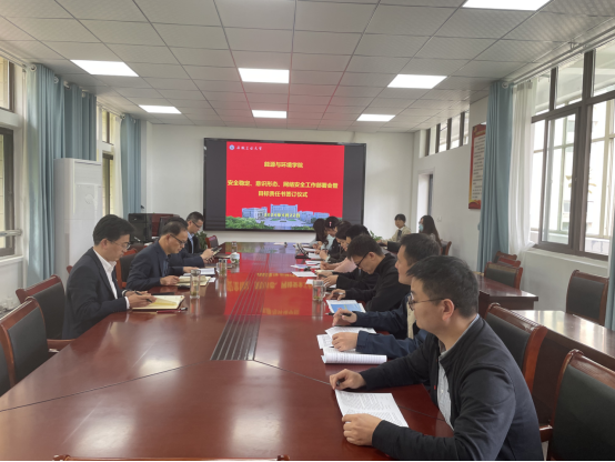 谢文平、钱付平代表学院党政与系党政班子、全体科级干部及全体辅导员签订《太阳城