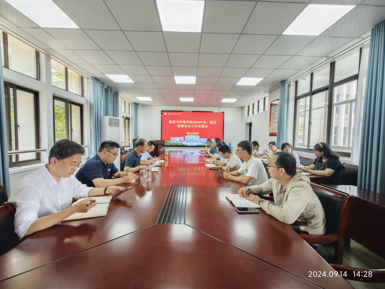 召开2024年中秋、国庆假期安全工作布置会。院领导班子、系(中心)主任、教工支部书记、全体辅导员参加会议,会议由学院党委书记谢文平主持。