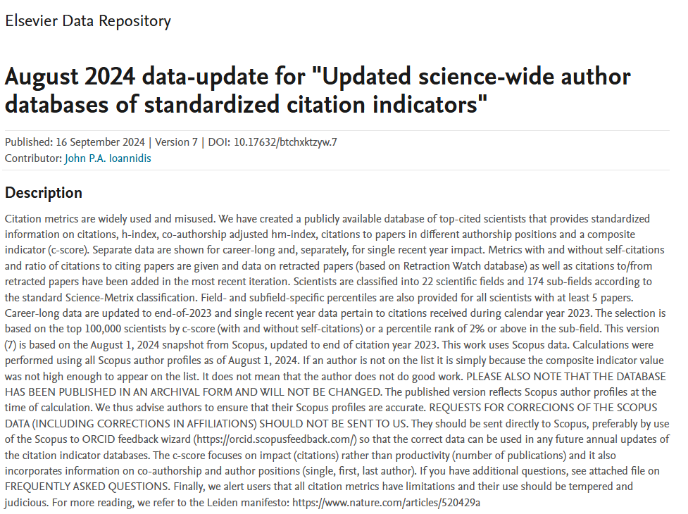 榜单链接://elsevier.digitalcommonsdata.com/datasets/btchxktzyw/7