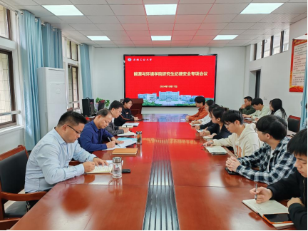 在能源楼325召开研究生安全纪律专题会议。院党委书记谢文平主讲,副院长楚化强、科研秘书李玲、研究生辅导员王稳定及全体研究生主要班干部参加,院党委副书记卫军帅主持会议。