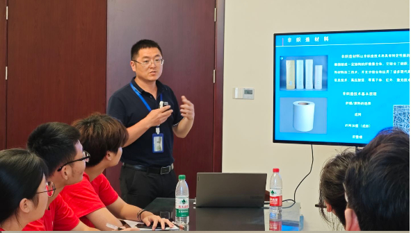 实践单位还为队员们带来一场干货满满的新材料产品工艺讲解。围绕袋式除尘技术,负责人从非织料材料的基础特性到专业应用,层层深入,让队员们对这项技术的制造流程、性能优势和发展趋势有了全方位的认识。