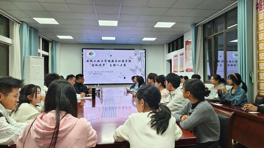 于佳山校区能源楼325成功举办“金秋之声”主持人大赛。院党委副书记、副院长卫军帅,院团委书记沈厚发,2025级辅导员、学生会相关骨干成员以及全体参赛选手共同参加了本次活动。