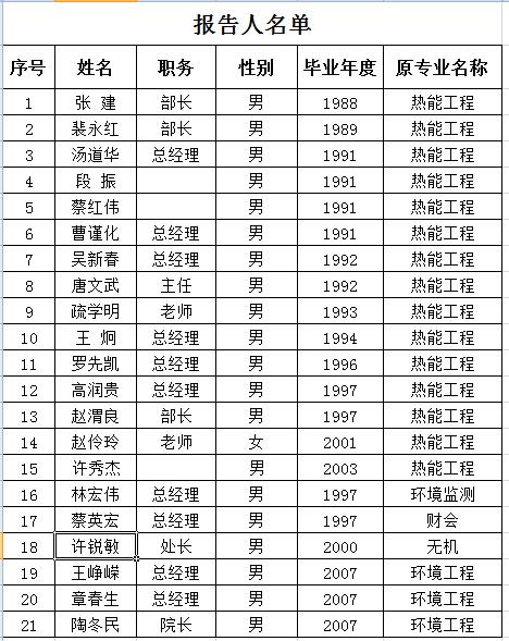 报告人:见下表