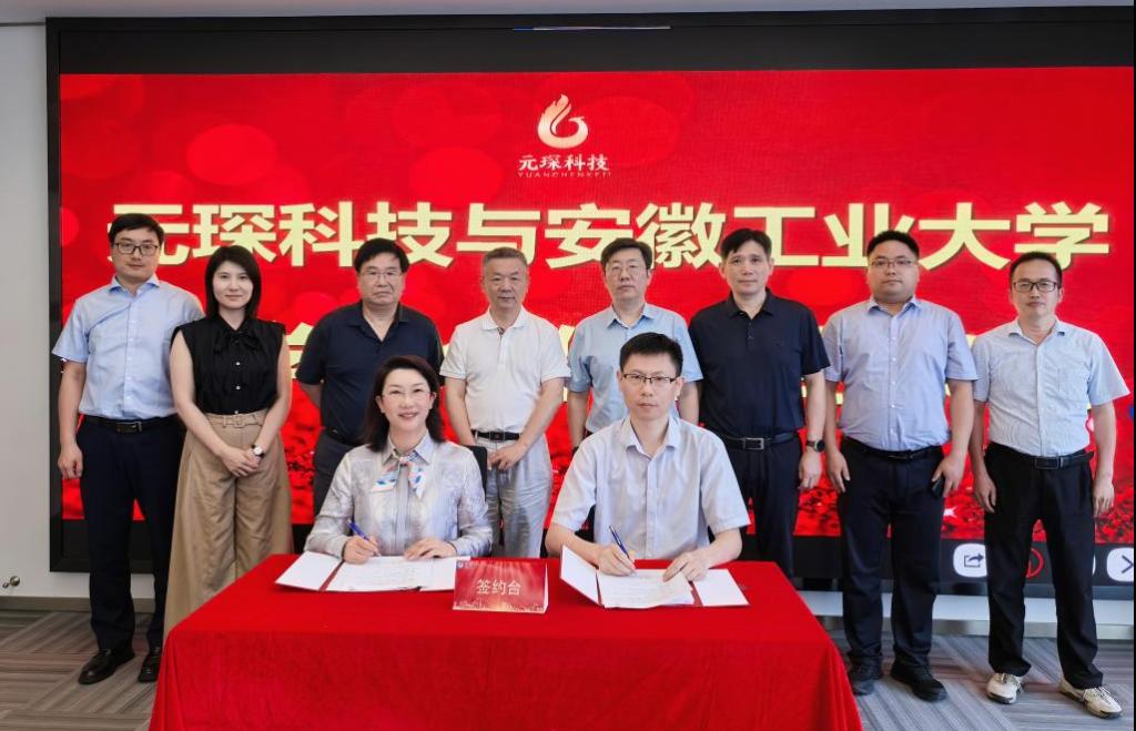 “工业烟气减污降碳协同控制”科研团队与安徽元琛环保科技股份有限公司(以下简称“元琛科技”)成功签订了合同额超500万的重大产学研项目——“AI+”脱硫脱硝智控模型与智慧运维。副校长张世宏,科研处处长吴宣够,元琛科技董事长徐辉、总经理梁燕,学院院长钱付平、副院长卫军帅,团队部分骨干教师参加签约仪式。
