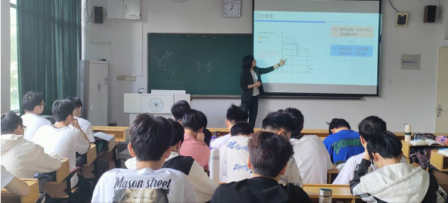 5月9日,新能源系蔡佳佳老师在教一310开讲《工程热力学》“课程思政”公开课,授课对象为新能源科学与工程的本科生,学院党委书记谢文平深入课堂和能动系相关青年教师一起听取了此次公开课。教学内容围绕“压气机的热力工程”开展,课上通过实物演示教学,让学生们直观地认识了压气机的种类及构造;从格力空调的核心科技之一-三缸两级压缩机入手,让同学们了解压缩机的用途,认识到创新能力的重要性;再过渡到新能源中压缩空气储能所用压气机的规格等,让学生掌握压气机的选型方式。通过一系列思政元素的引入,在激发了学生的学习兴趣的同时也让前期掌握了压气机分类、工作原理及工作效率等专业知识,实现“如盐入水”的教学效果。通过介绍陈懋章院士在压气机领域的重要成果,勉励学生奋发向上,努力将已之所学转化为国之所需,激励学生成才。课后,还与在场其他教师就教学内容、形式及学生学习效果进行了的交流和探讨,明确了授课教师未来课程思政教学的建设方向,有助于不断提高人才培养质量、提升立德树人成效。