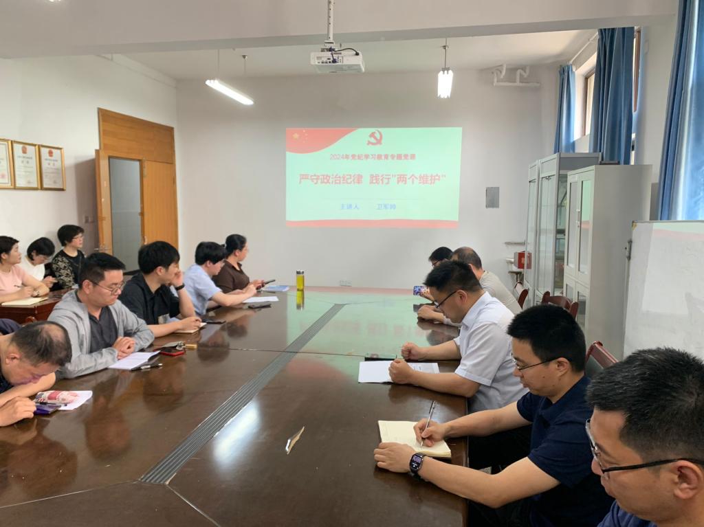 卫军帅深刻阐述了开展党纪学习教育的意义、目标和任务,对《中国共产党纪律处分条例》的相关修订以及重点条文进行了解读。卫军帅强调,老师们一定要自觉“学纪、知纪、明纪、守纪”,扎扎实实开展好党纪学习教育,严守政治纪律,践行“两个维护”,把纪律要求融入日常、化为习惯。