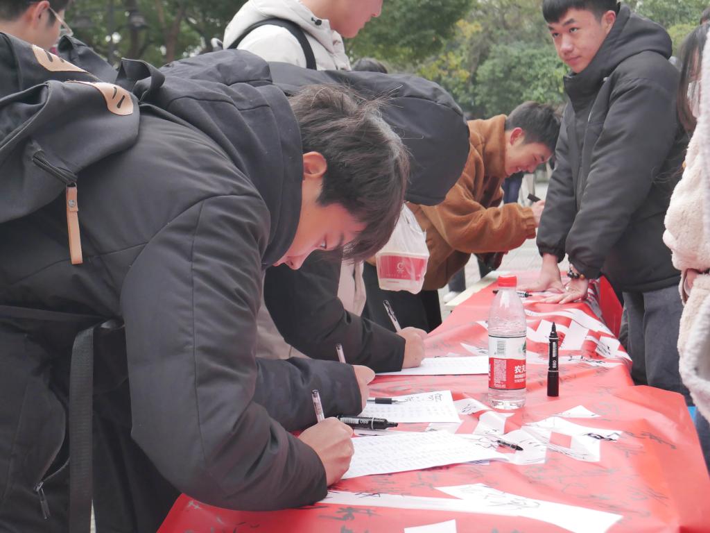志愿者们提前将桌子摆放整齐,拉好横幅,放好签字笔,进行现场横幅签字活动。志愿者们还向现场参与同学科普了一些关于传销的知识以及如何防范传销的方法。
