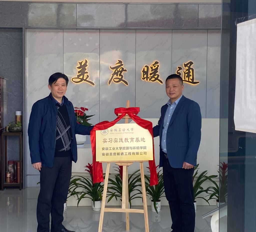 院长钱付平,院党委副书记、副院长谢文平等一行6人前往马鞍山市当涂经济开发区与安徽美度暖通工程有限公司、奥克斯家电制造马鞍山工厂签订实习实践教育基地合作协议并举行基地揭牌仪式。安徽美度暖通工程有限公司总经理夏俊峰、安徽奥克斯智能电气有限公司家电制造马鞍山工厂总经理赵亚兵等参加了座谈交流。