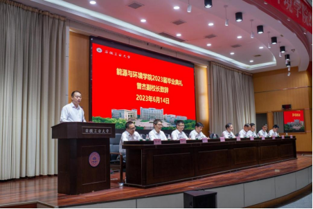 6月14日下午,能源与环境学院2023届毕业典礼在佳山校区学术会议中心四楼报告厅隆重举行。校党委常委、副校长曾杰出席。能源与环境学院领导班子成员、各系党支部书记、系主任、教师代表、班主任、辅导员以及全体毕业生参加。毕业典礼由院长钱付平主持。