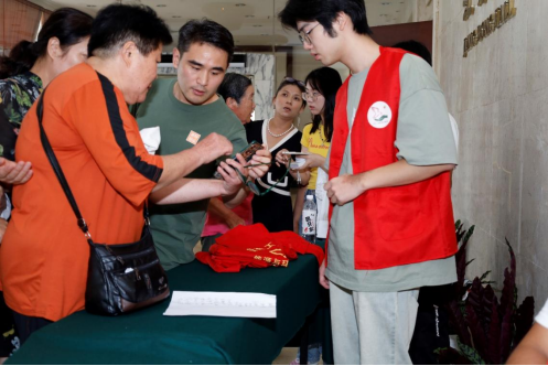 志愿者们分工合作,有的负责行检票,有的负责场内秩序,有的为不了解相关知识的老人解答疑惑,并帮助他们使用微信领抢红包,并于活动结束后为老人们发放礼品。