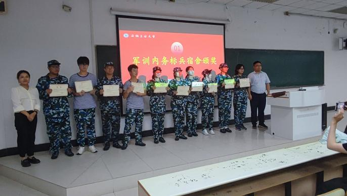 关于表彰2023级学生军训先进集体和先进个人的决定,紧接着,参会嘉宾为各位班助同学发放聘书,为军训期间表现优异的军训内务标兵宿舍、军训先进个人以及军训征文获奖同学颁奖。