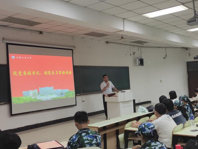 2023级新生军训总结大会在教三南103教室举行。院党委副书记、副院长卫军帅,院团委书记钱春梅,2023级新生辅导员,各班班助以及全体新生参加了大会。