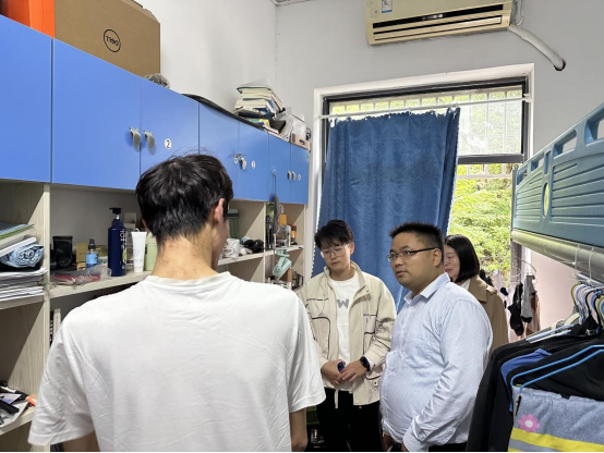 各年级辅导员在学院党委副书记、副院长卫军帅的带领下深入“一站式”学生社区,面对面走访学生宿舍,与学生亲切交谈,旨在了解学生思想动态、学习生活和宿舍情况,及时发现问题,为学生排忧解难。