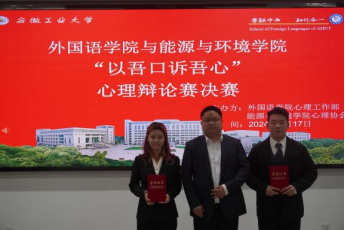与外国语学院联合举办“以吾口诉吾心”主题辩论赛决赛。学生工作部副部长、心理中心主任俞超,外国语学院党委副书记施铜兴、太阳城